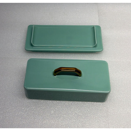Elegant Sweeze mint green Butter Dish w/ Gold Handle .
