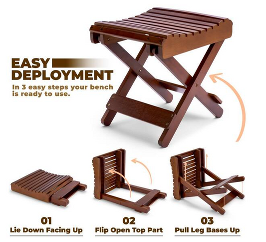 11 in. L x 11 in. W x 13 in. H Bamboo Shower Corner Seat, Rectangle Folding Step Stool Bench in Dark Brown
