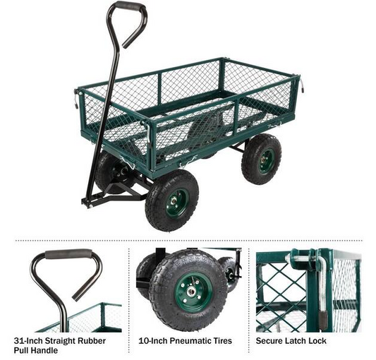 10.4 cu. ft. Steel and Rubber Wagon Garden Cart with 650 lbs. Capacity, Green