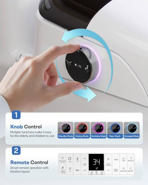 Electric Plug-In Bidet Seat for Elongated Bidet Toilet Seat with Instant Warm Water Dryer Self-Clean Nozzle in White