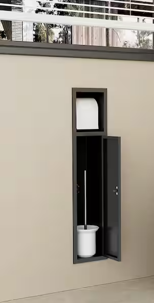 6 in. W x 25 in. H x 5.5 in. D Recessed Toilet Brush Holder with Cabinet, Shower Niche Toilet Paper Holder in Black