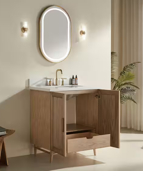 Collette 30 in. Single Sink Cinnamon Oak Bath Vanity with White Carrara Marble Top (Assembled)