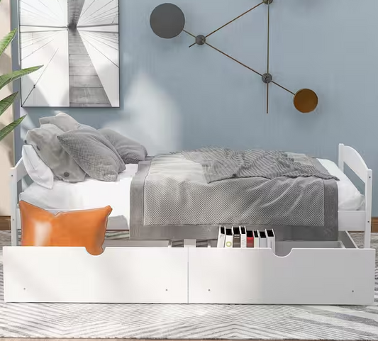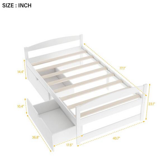 White Modern Wood Daybed with 2-Drawers Twin Size Platform Bed Captains Bed Storage Bed Frame No Spring Box Needed