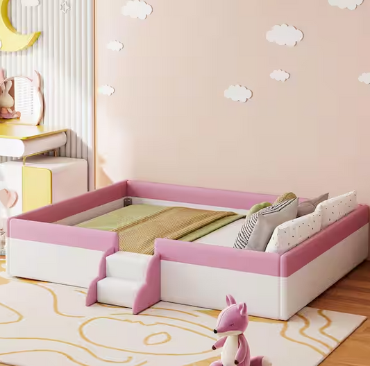 Pink/White King/Queen Size Daybed with Fence and Stairs