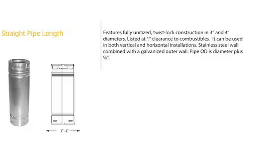 PelletVent for Multi-Fuel 4in. Diameter X 36in. Straight Pipe Length