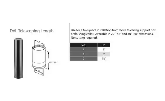 Model DVL Double Wall Stove Pipe 6in. Diameter x 40in. to 68in. Telescoping Stove Pipe Length