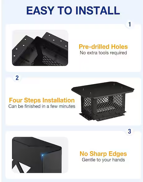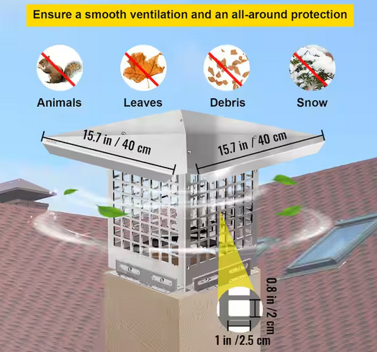 Chimney Cap 8 in. x 8 in. Flue Caps 304 Stainless Steel Fireplace Chimney Cover Chimney Flue Cover