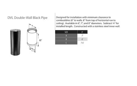 Model DVL Double Wall Stove Pipe 6in. Diameter X 48in. Double Wall Stove Pipe Length