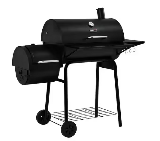 Charcoal Grill in Black with Offset Smoker and Side Table