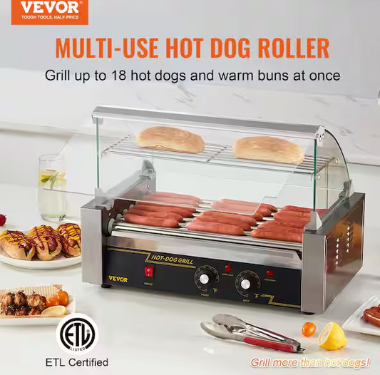 Hot Dog Roller 7 Rollers 18 Hot Dogs Capacity Stainless Sausage Grill Cooker Machine, ETL Certified