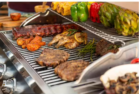 Gourmet Pro 6-Burner Stainless Steel Propane Gas Grill with Searing Side Burner and Griddle Max Insert