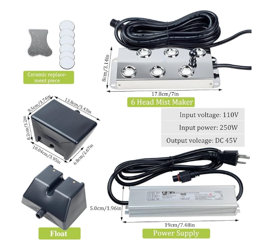 Ultrasonic Mist Maker Fogger Machine, Industrial Humidifier Fog Machine with Floats for Halloween Atmosphere Vegetable Preservation and Landscape (6 Head)