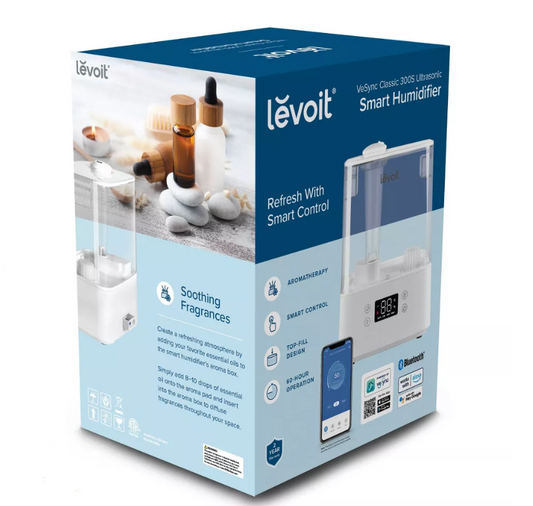 Levoit Classic 300S Ultrasonic Smart Humidifier White: Cool Mist, No Filter, 300-500 sq. ft.