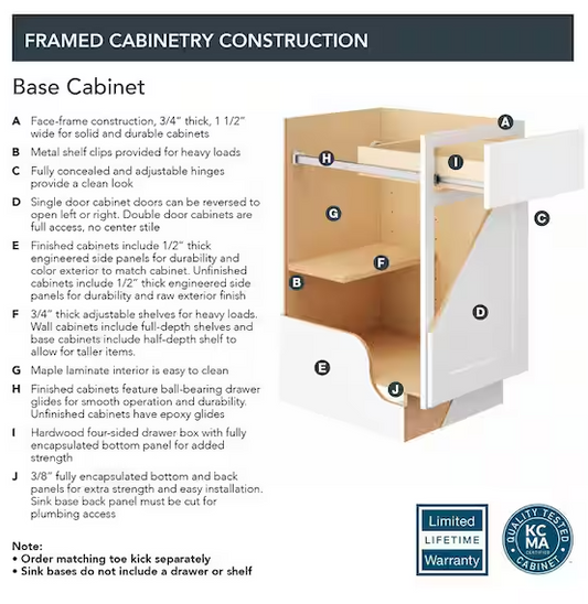 Shaker 9 in. W x 24 in. D x 34.5 in. H Assembled Base Cabinet in Satin White