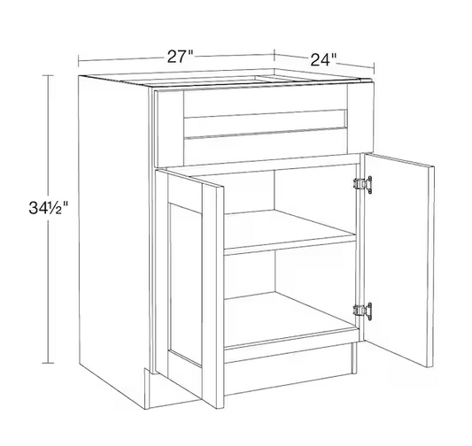Arlington Vesper White Plywood Shaker Stock Assembled Base Kitchen Cabinet Soft Close 27 in. W x 24 in. D x 34.5 in. H