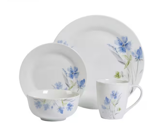 16-Piece Casual White with Pattern Ceramic Dinnerware Set (Service for 4)