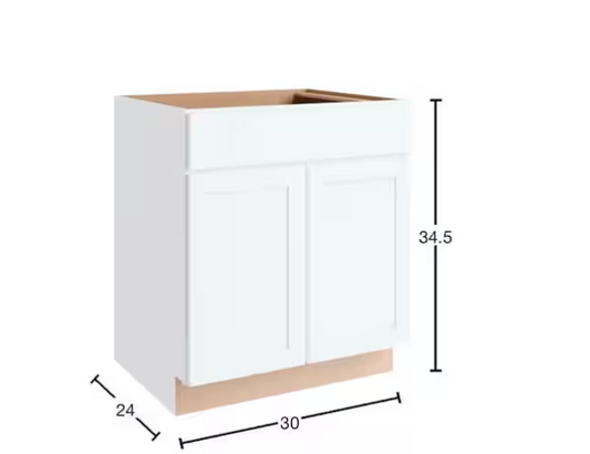 Courtland 30 in. W x 24 in. D x 34.5 in. H Assembled Shaker Sink Base Kitchen Cabinet in Polar White