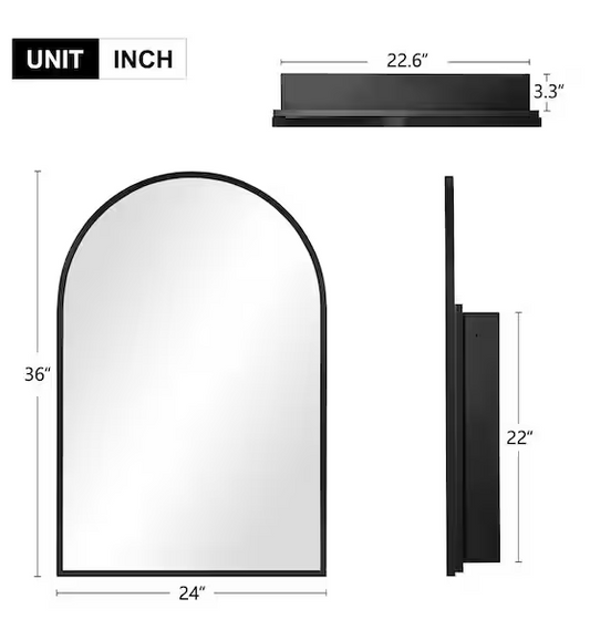 24 in. W x 36 in. H Arched Recessed/Surface Mount Medicine Cabinet with Mirror in Black