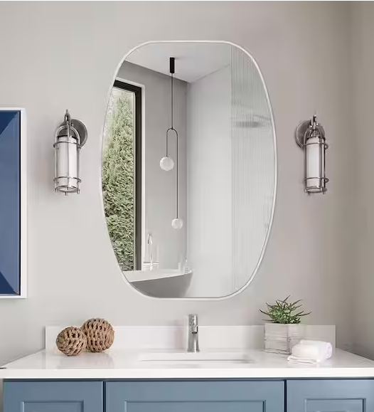 20 in. W x 30 in. H Silver Oval Wall Mounted Aluminum Alloy Bathroom Mirror Decorative Mirror