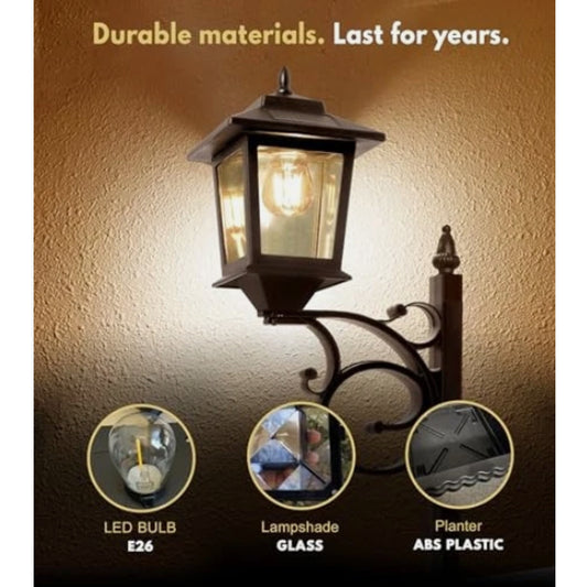 2 in 1 Outdoor Flower Pots for Real or Fake Flowers, Solar Lamp Post Black