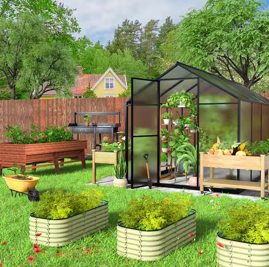6 ft. W x 8 ft. D Polycarbonate Greenhouse For Outdoors, Green House Kit with Adjustable Roof Vent, Gray