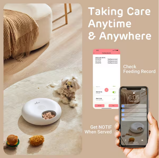 Donuts Frost Wi-Fi 6 Meal Automatic Dog/Cat Food Feeder with App Control, 2 Ice Packs, Timer, Holds 6 x 1/2 lbs. of Food