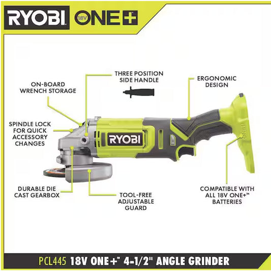 ONE+ 18V 4-1/2 in. Angle Grinder with ONE+ 18V 4.0 Ah Lithium-Ion and charger