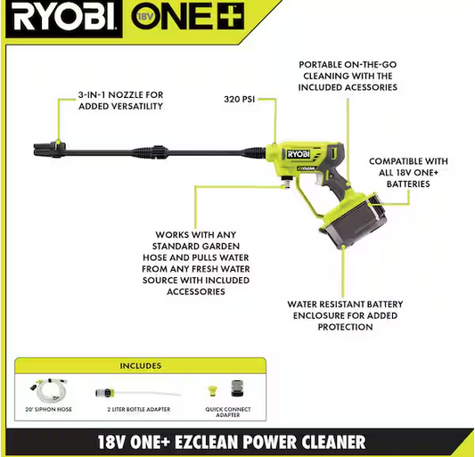 ONE+ 18V EZClean 320 PSI 0.8 GPM Cordless Battery Cold Water Power Cleaner (Tool Only)