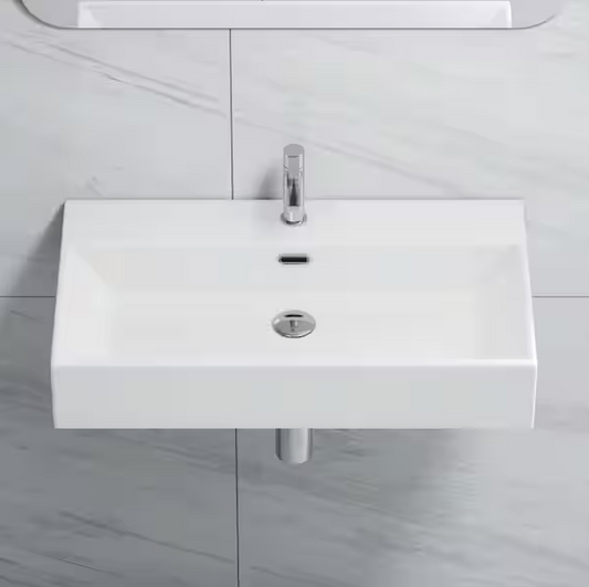 Turner Vitreous China 30 in. W x 16 in. D x 5 in. H Wall-Mount Bathroom Sink with Faucet Hole and Overflow in White