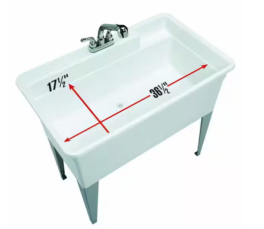 Utilatub Combo 40 in. x 24 in. 33 in. Polypropylene Floor Mount Utility Tub with Pull-Out Faucet in White