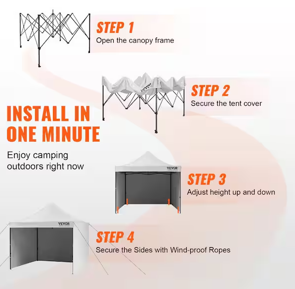 10 ft. x 10 ft. Pop Up Canopy with Sidewalls Adjustable Height Gazebo Tent Waterproof UV Resistant Outdoor Canopy Tent
