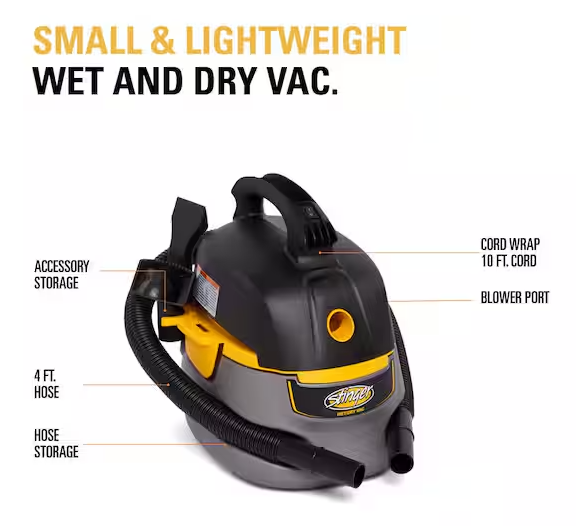 2.0 Gal. 1.75 Peak HP Small Shop Vacuum Wet Dry Vac with Filter Bag, Hose, Utility and Car Nozzle Attachments HD2025