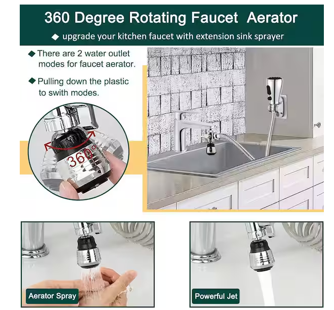 2.5 in. H x 7 in. W x 3.5 in. D Faucet Sink Sprayer Attachment Set with Hose, Faucet Aerator and Brass Diverter Valve