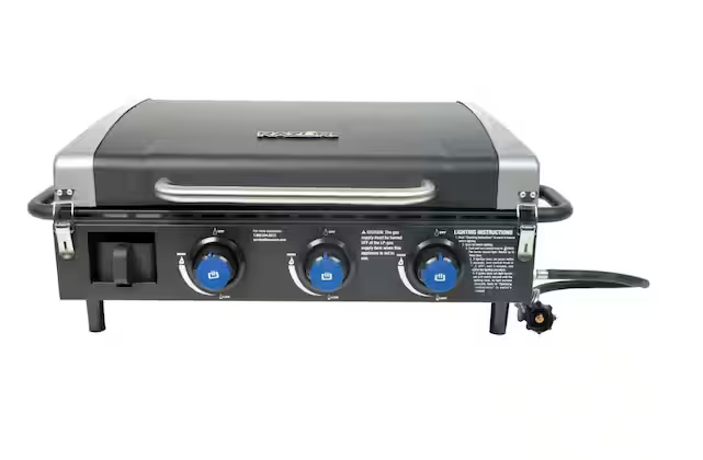 25 in. 3-Burner Portable Propane Gas Griddle with Lid in Black