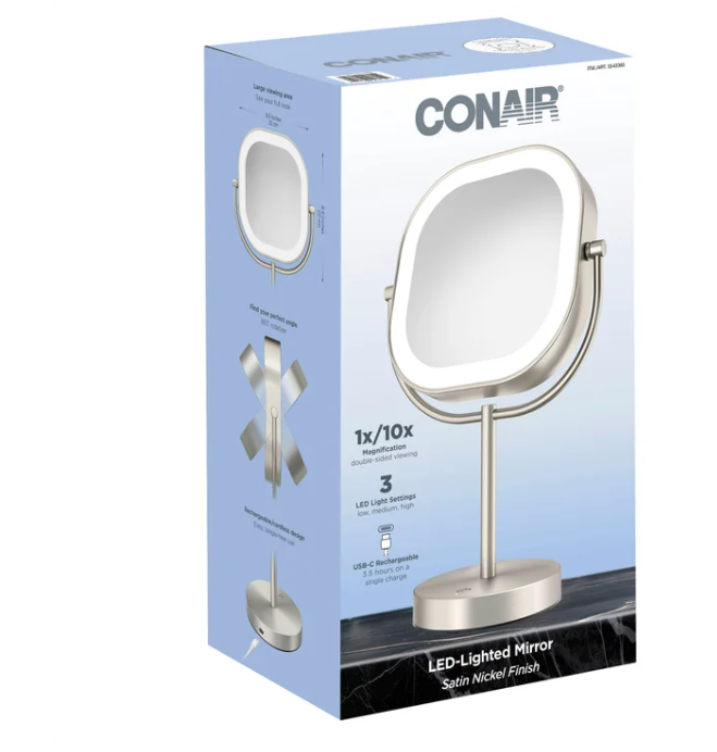 Conair LED Double-Sided 1x/10x Magnification Rechargeable Mirror