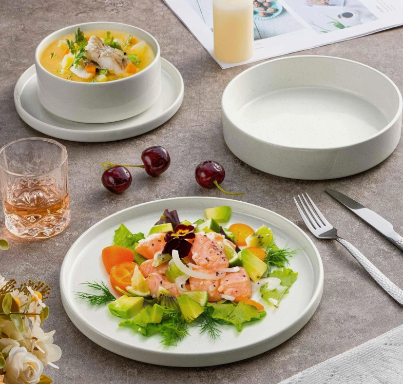 Dinnerware Sets with Pasta Bowls, 16 Piece Plates and Bowls Set for 4, Stoneware