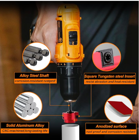 Double-Blade PVC Pipe Reamer Kit (1/2" to 4") 8PCS into Standard 1/2" Drills - Fits Sch.40
