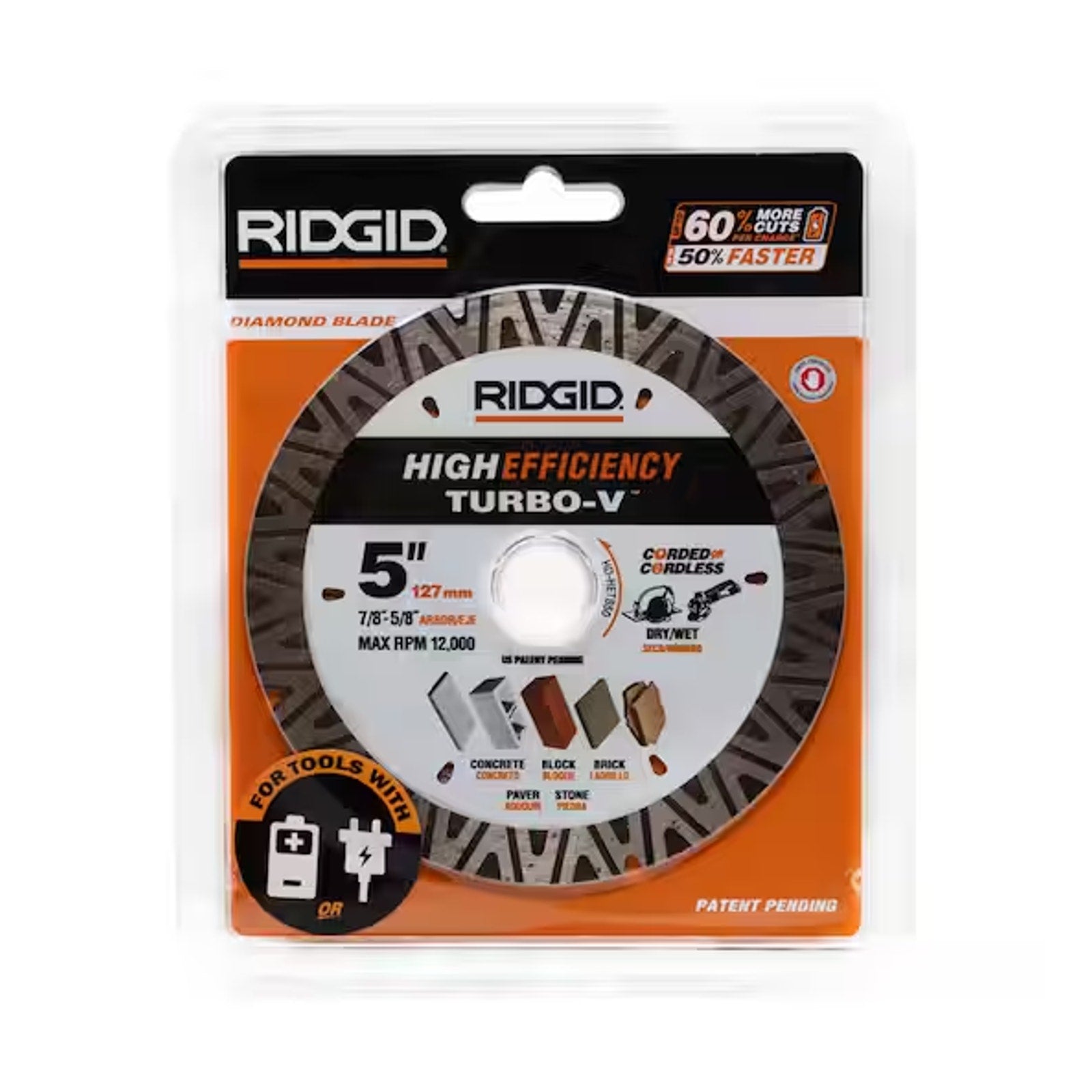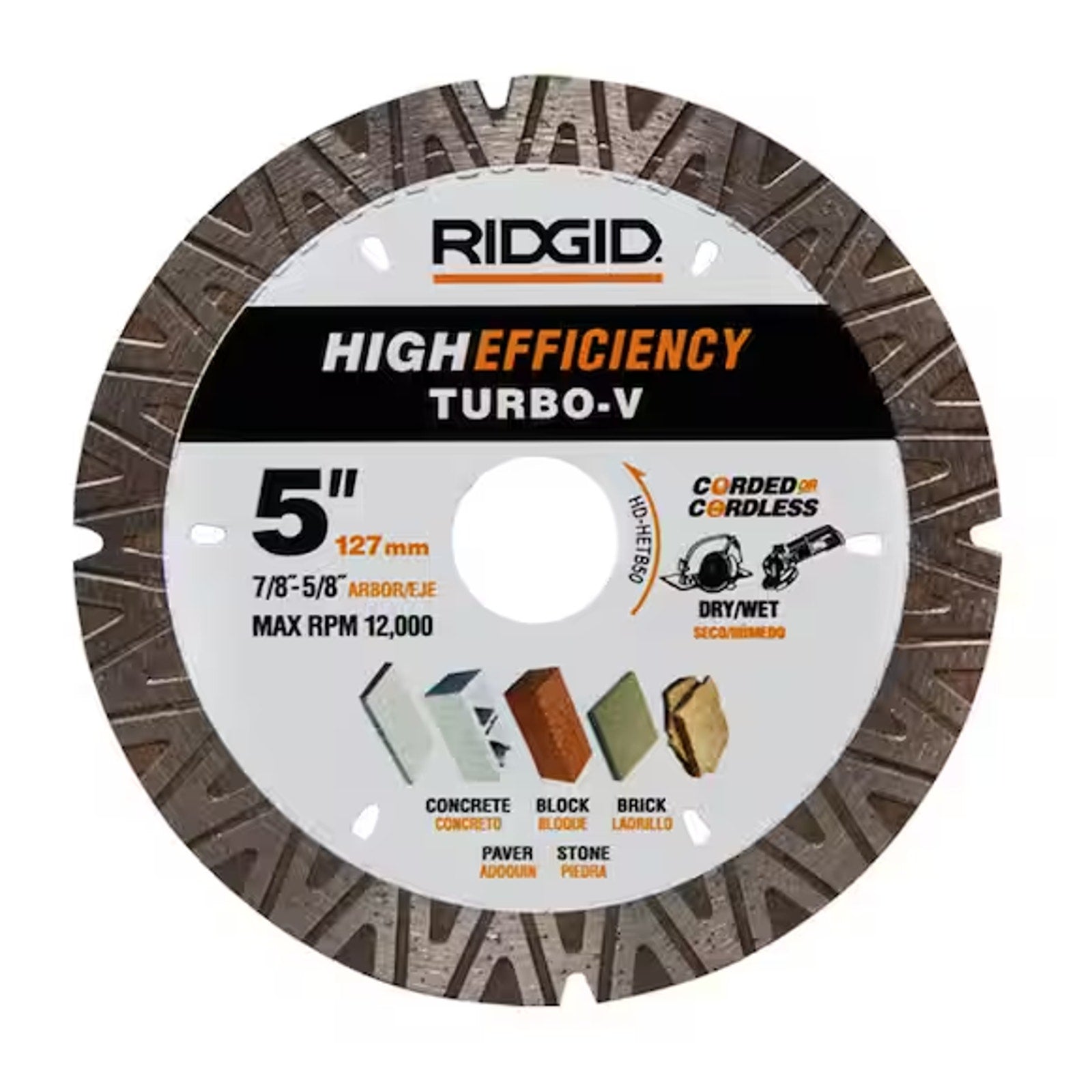 (PACK OF 5) Ridgid TURBO-V 5" Turbo Rim Diamond Blade High Efficiency HD-HETB40