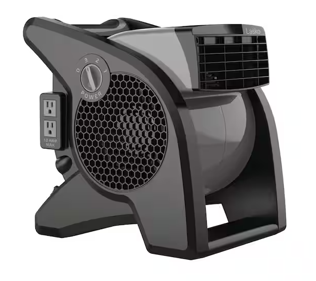 Pivoting 11.2 in. 3 Speed High Velocity Blower Fan for Home, Job Site in Gray, 375 CFM, 2 120V Outlets, Circuit Breaker