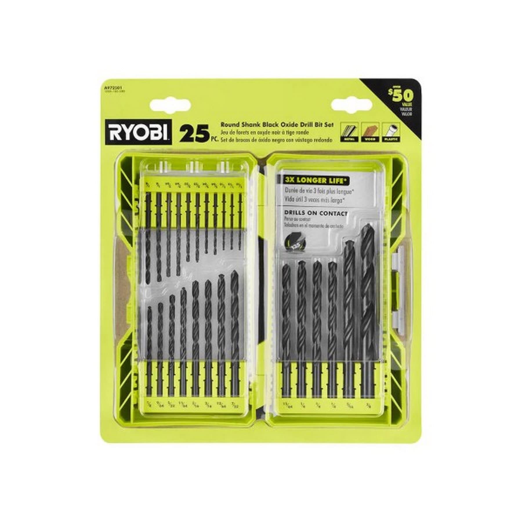 RYOBI Black Oxide Round Shank Drill Bit Set (25-Piece)