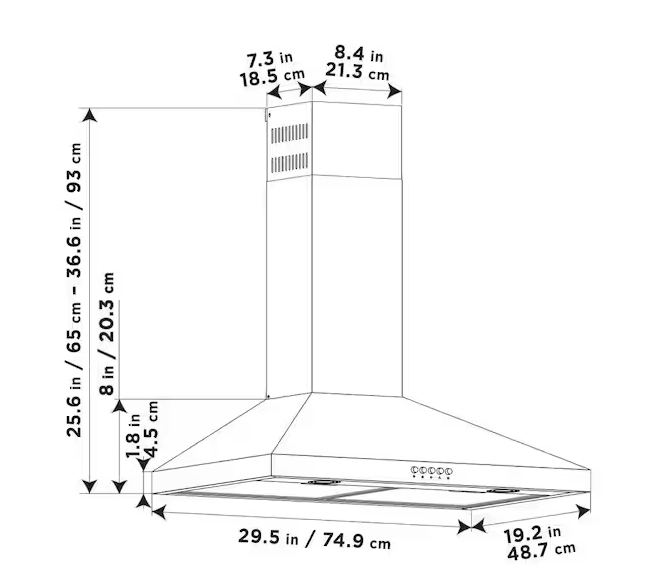Siena 30 in. 350CFM Convertible Pyramid Wall Mount Range Hood in Stainless Steel with Charcoal Filter and LED Lighting