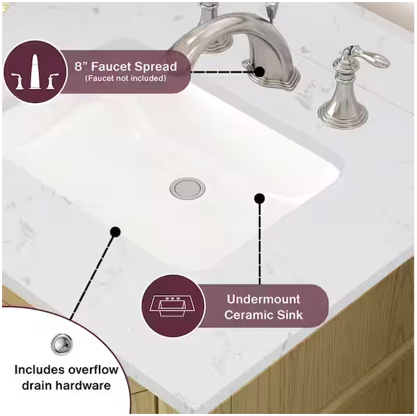 Talmore 72 in. Double Sink Light Oak Bath Vanity with White Engineered Marble Top (Assembled)